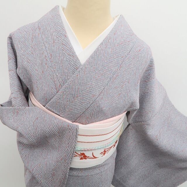 グレーを基調に、ほんのりと赤を差し込んだ有松鳴海絞りの小紋でございます。