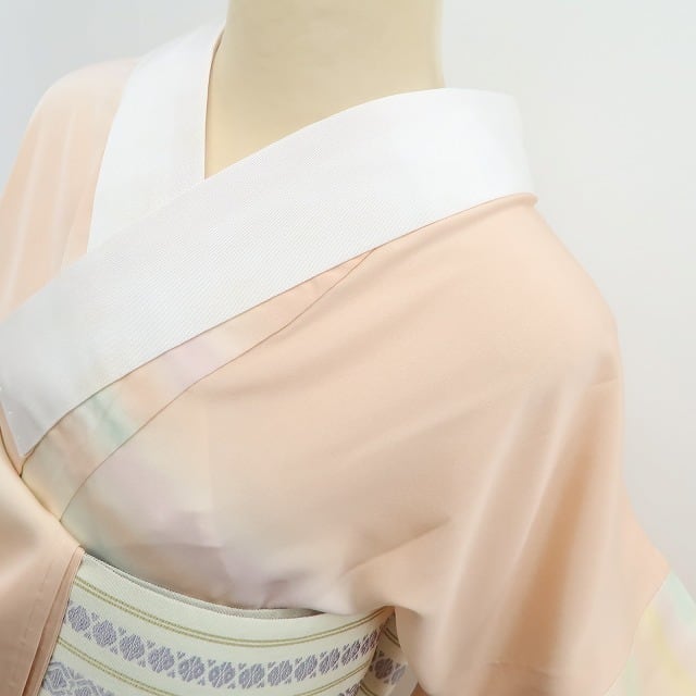 半衿に保管時に付いた目立たぬ薄シミがあるのみ新品未使用・撮影の為だけに着付けた一枚、仕付け糸付“手縫い仕立て”のお品でございます。