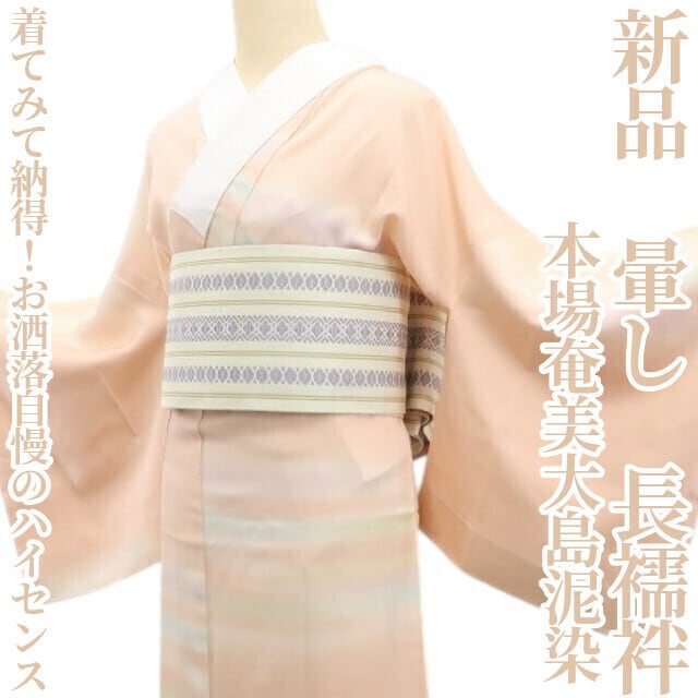 新品 本場奄美大島泥染 暈し“着てみて納得!お洒落自慢のハイセンス”着物 正絹 仕付け糸付 長襦袢 665