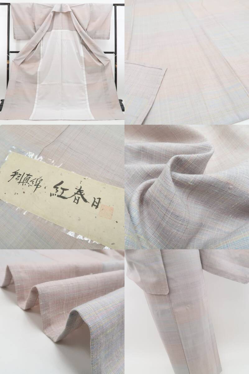新品 単衣 お仕立て上がり品 着物“香り残して振り返る花の紬の物語”トールサイズ 仕付け糸付 紅花染め紬 6656