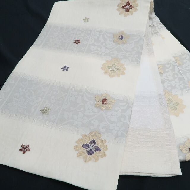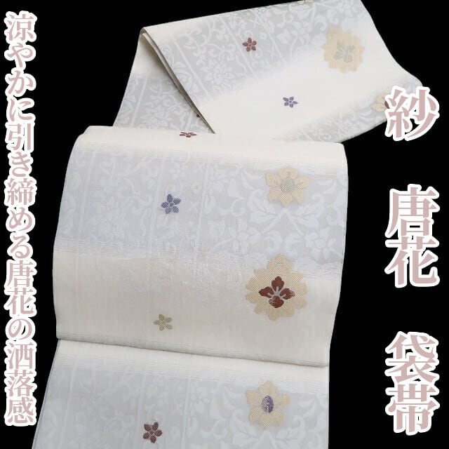 紗 唐花 夏着物 正絹”涼やかに引き締める、唐花の洒落感”袋帯 6669