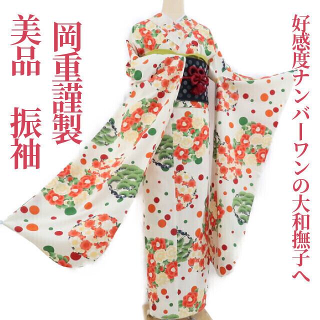美品 岡重謹製 洗える着物 成人式“ドットとまんまる花束で好感度ナンバーワンの大和撫子へ”振袖 1169
