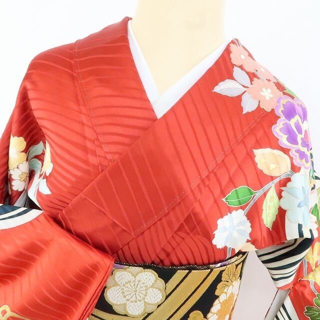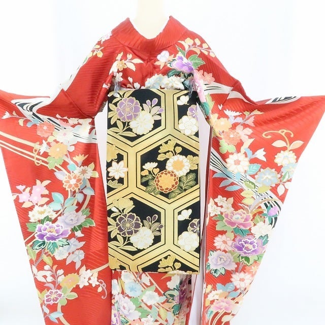 晴れを歌う赤を舞台に多彩な色を花咲かせ、金駒刺繍で特別に着飾った花々と迎える成人式...。