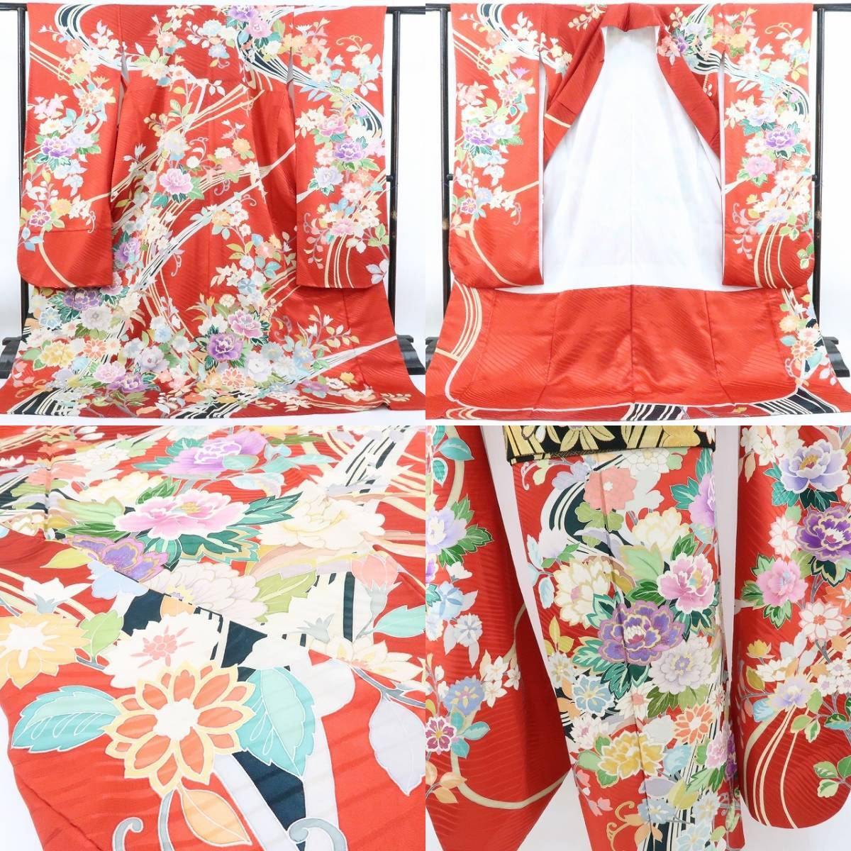 どこから見ても目を引く赤に響く晴れを歌う声、優しい色から気品あふれる色、幸せを呼ぶ色、多彩な色付きを花咲かせ、金駒刺繍で特別に着飾った満面の笑みを際立たせて駆け巡る花々が祝福し、一生に一度の晴れ舞台を盛り上げる振袖は、長身さんに嬉しいトールサイズ。