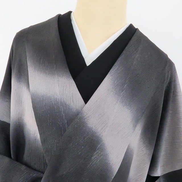 檳榔子染(びんろうじぞめ)色と薄色の彩色に透き通るアブストラクトなモダンデザイン、艶めいた透明感にミステリアスな表情を映し出す紋紗のひと品、程良い透け感が涼しさを誘いすっきりとした夏のシルエットを創り出します。