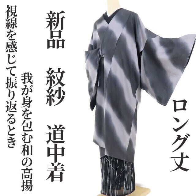 新品 紋紗 夏着物 ロング丈“視線を感じて振り返るとき…我が身を包む和の高揚”仕付け糸付 正絹 道中着 1570