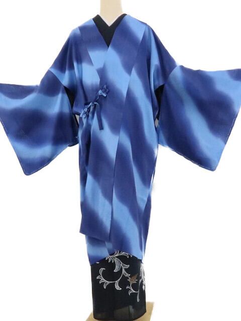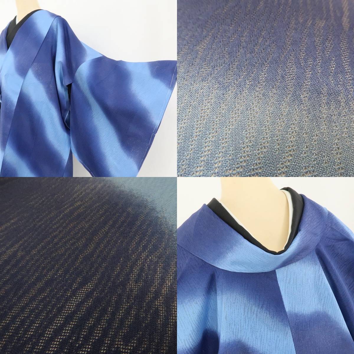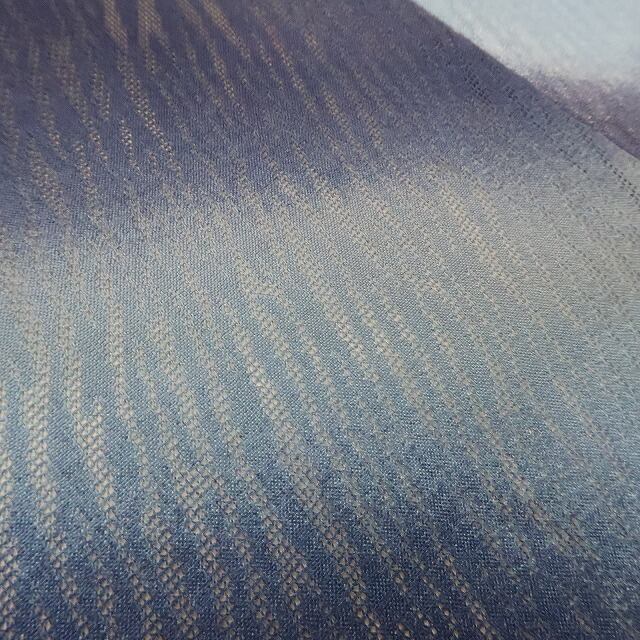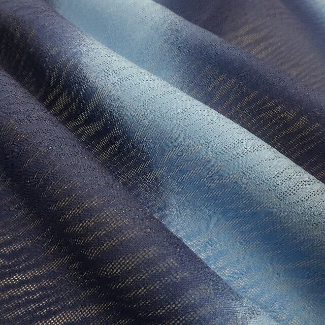 涼を趣く紺色と浅縹色の彩色に巧みな構図で込められたアブストラクトな創作デザイン、豊かな透明感にモダンな表情を映し出す紋紗のひと品、程良い透け感が涼しさを誘いすっきりとした夏のシルエットを創り出します。