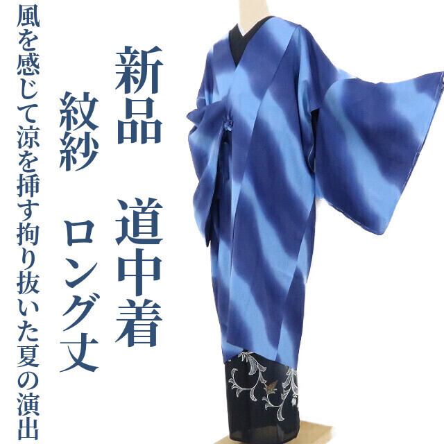 新品 紋紗 夏着物 ロング丈“風を感じて涼を挿す拘り抜いた夏の演出”仕付け糸付 正絹 道中着 1571