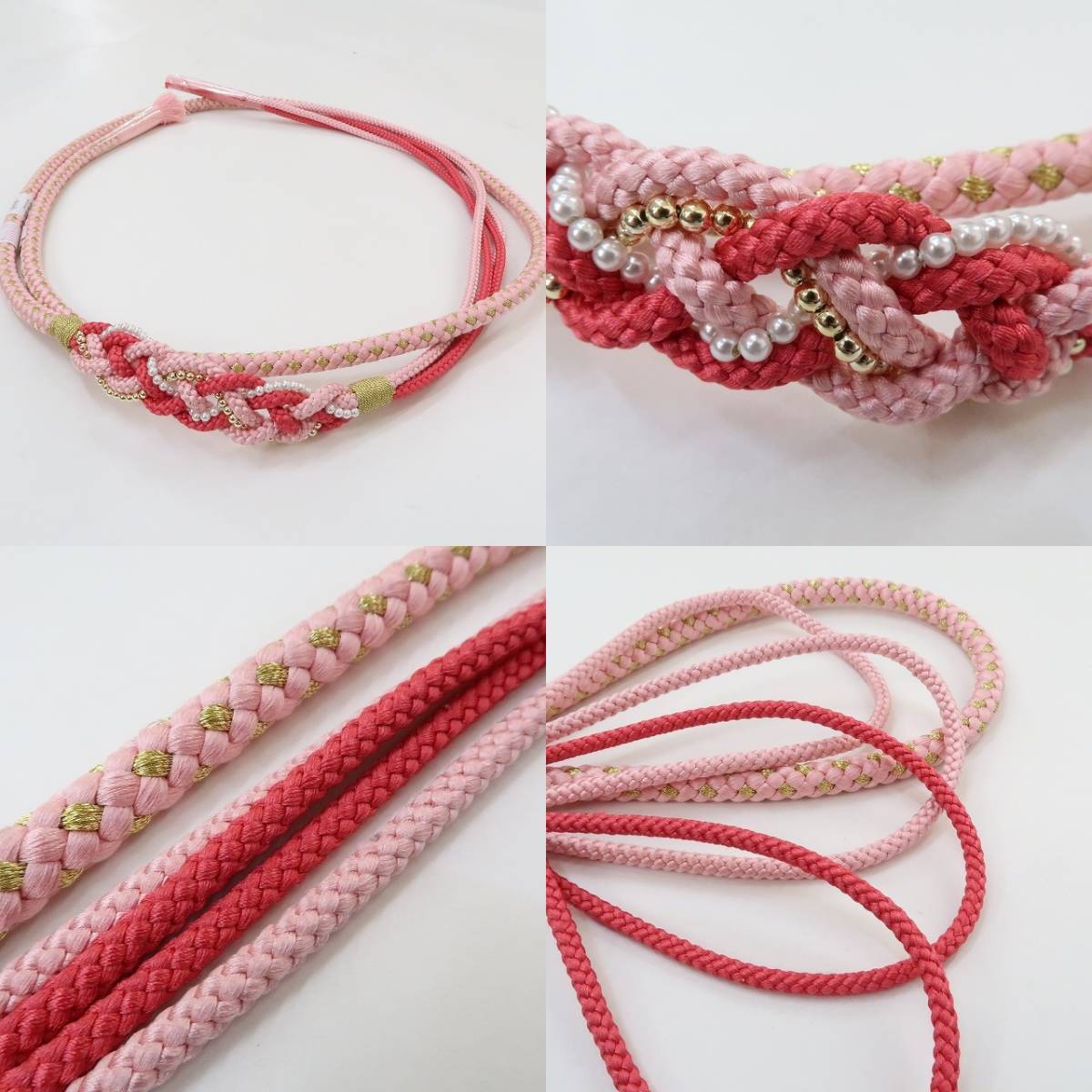 優しいピンクで美しい編みを見せ、ねじりとパールで華やかなアクセントをプラスしてしっかりと帯を飾る一本は、まだ誰も味わっていない“真っ新な”お品物。