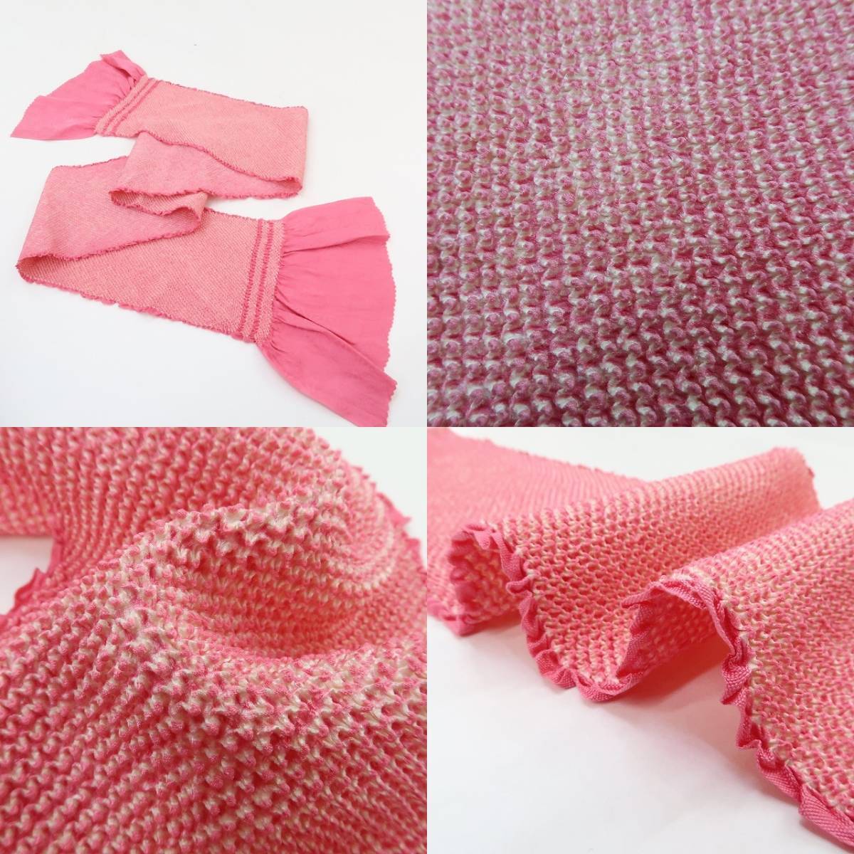 可愛いらしさで溢れる赤紫色がなんとも贅沢な立体感にフリルのような甘さを持ち、ちらりと顔を覗かせて帯周りに華やかな印象をプラスする一枚は、「しみ・汚れなし」。