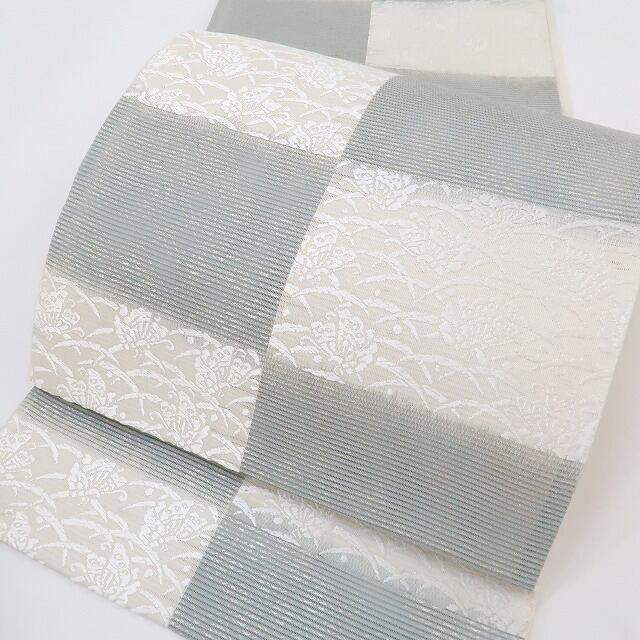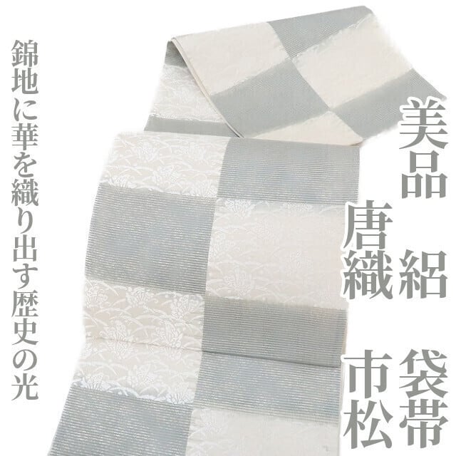 美品 絽 唐織 市松“錦地に華を織り出す歴史の光”夏着物 正絹 袋帯 2104