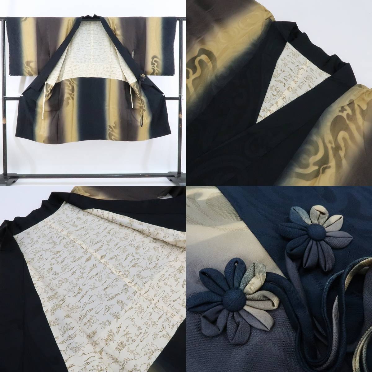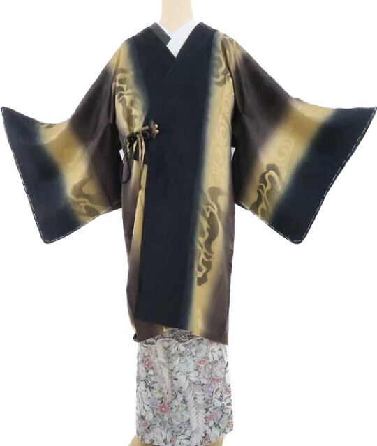 道中着は、フォーマルな道行きに対して、比較的カジュアルな装いに羽織る和装アウターです。衿の形は道行と違い着物の衿に沿う形状で、一般的にお洒落着として、好みの生地や柄行で仕立てられます。
