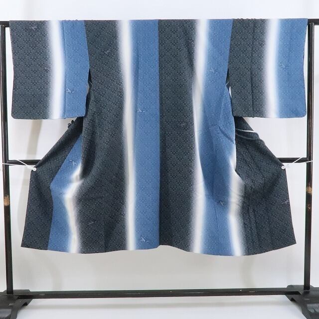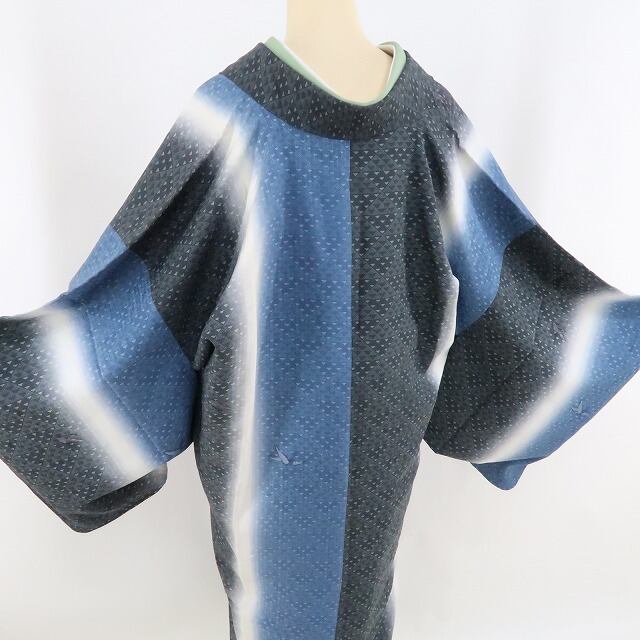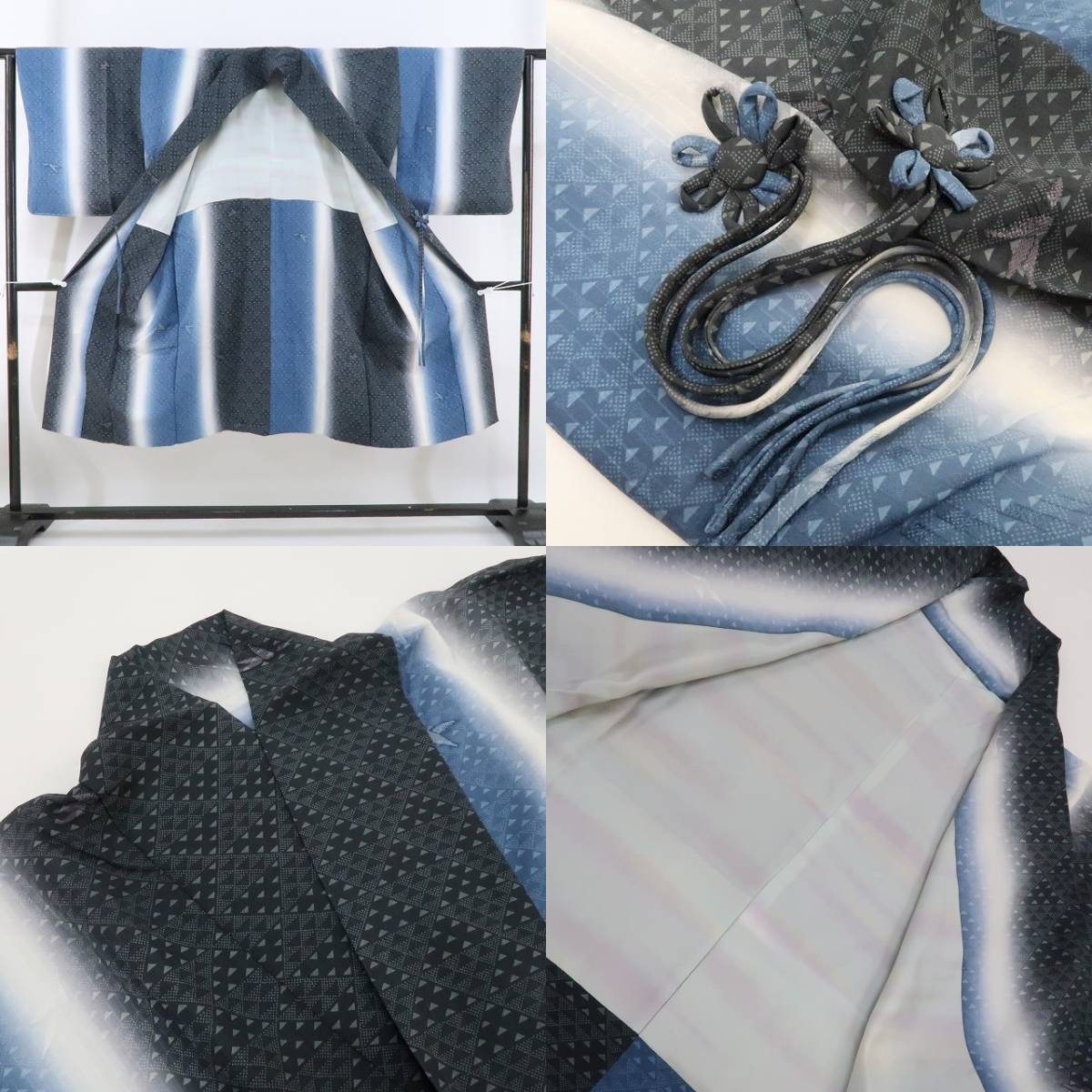 新品 暈し 着物 正絹 ロング丈 仕付け糸付“夢中になるセンスを運ぶグレー×白×紺鼠色の抱擁”道中着 2635