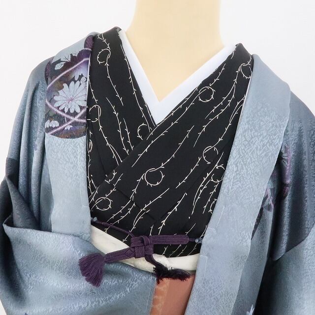 ミシン製とは一味違う“手縫仕立て”ならではの馴染みの良さ、お着物にもあなたにも優しい“正絹”素材の心地よい抱擁、やわらかな雰囲気の霞空が広がる羽裏にもご注目。