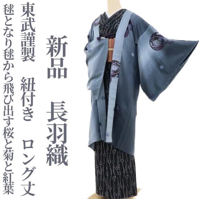 新品 東武謹製 紐付き 着物 ロング丈 仕付け糸付“毬となり、毬から飛び出す桜と菊と紅葉”長羽織 2682