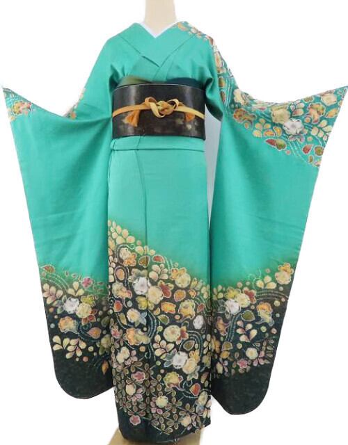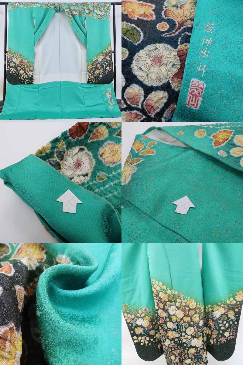美品 2点セット 翠山工房 桐屋の辻ヶ花 落款 成人式“夢幻の風で世界は一変”着物 振袖・長襦袢 2885