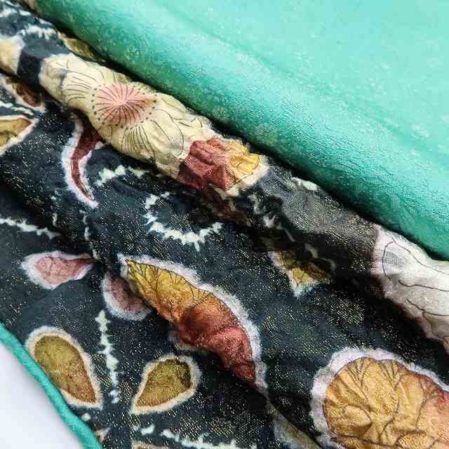 “辻ヶ花”とは、室町中期から江戸時代にかけて流行した絵模様染。当時は染め物と言えば辻ヶ花と言われるほど一般的で、武士たちはファッションの先端をゆく斬新で目立つ辻ヶ花を好んだといいます。しかしながらその発生時期や加工法、名称の由来など謎に包まれ、友禅技法が普及していくと姿を消したことから“幻の染”とも言われます。