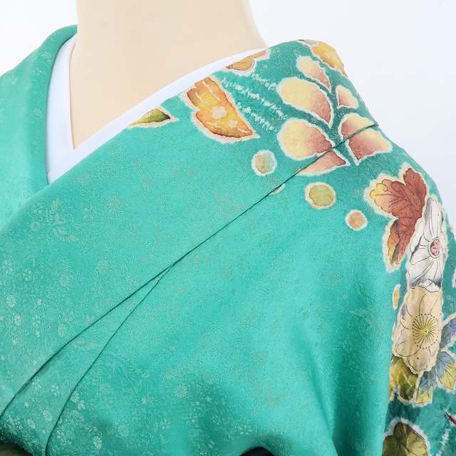 ほっこりする温か味と懐かしさ、情感たっぷりの色と表情を花開く桜や梅、菊、銀杏や葵、一面に紛れながら煌やかに響く繊細でいて豊かな息吹が、これは夢か幻か..と思わせる美しさで翔け、袖を通す主役のまだ見ぬ美しさを引き出し、見える景色を新世界のように思わせる、翠山工房“桐屋の辻ヶ花”落款振袖・長襦袢2点セットでございます。