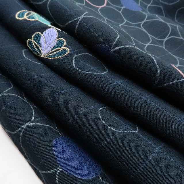 新品 刺繍 着物 正絹 仕付け糸付“沸き起こる泡に舞い踊る水中花”長羽織 2890