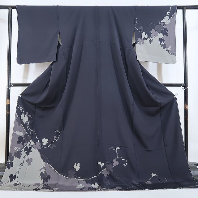こちらのお着物は、濃淡のコントラストで意匠の美しさにフォーカスした蔦葉の柄行を込めております。控えめな主張で、嫌みのない“さりげないセンス”がとても新鮮に映るお召し物です。
