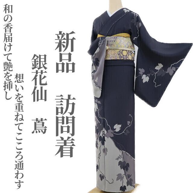 新品 銀花仙 蔦 着物“和の香届けて艶を挿し想いを重ねてこころ通わす”正絹 仕付け糸付 訪問着 2891
