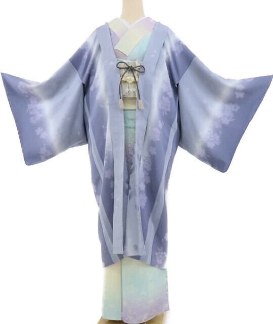 新品 桜 鳥獣戯画 ロング丈 着物“ほんのりと桜を湛えて春を待つ今も昔も変わらぬ想い”紐付き 仕付け糸付 長羽織 2921