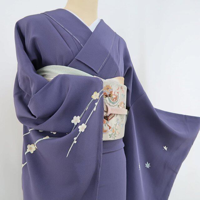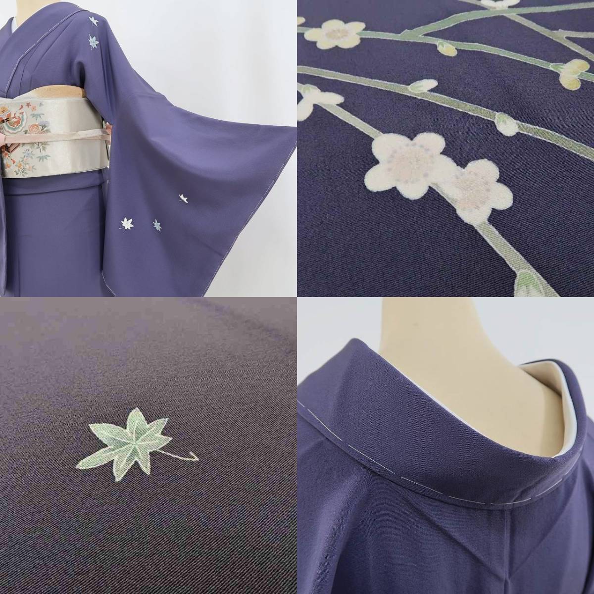 丁寧に染め上げられた桔梗色の地に慎ましやかな色を挿す春待ち梅のデザインモチーフ、シンプルながら意匠に込められた気品の表情は必見!それは伝統の技が創り出す“艶に色挿す友禅の華”、季節の装いに…お奨めです。