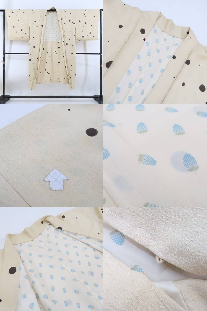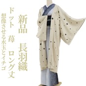 新品 ドット 苺 着物 正絹 ロング丈 仕付け糸付“想像させる水玉とイチゴ”長羽織 2985