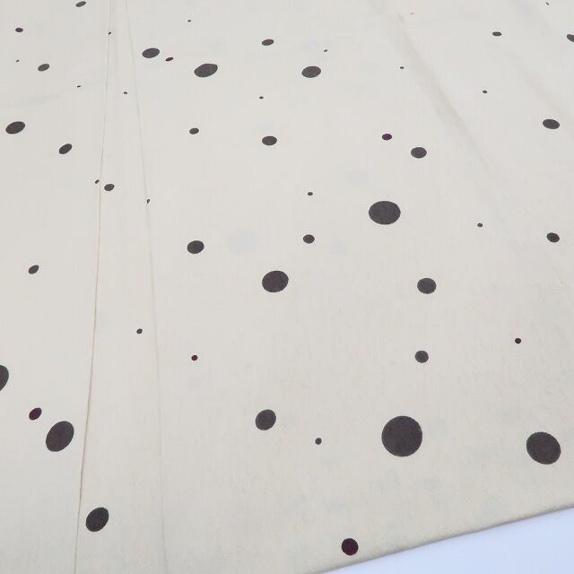 一瞬、次々と惑星が現われるかのように見え、悪戯な気温の変化を見せる日は、しゅわしゅわと湧き上がるサイダーを想像させるドットを追いかければ、無地場に見えていた所に繊細に浮き立つ表情に気が付き、羽裏では、きっと爽やかな風味...と想像させる苺が待つ、ドット 苺“正絹”ロング丈仕付け糸付長羽織です。