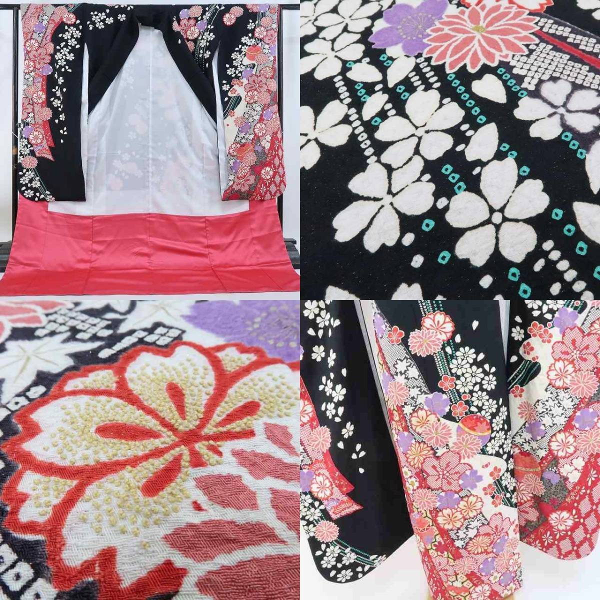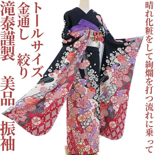 美品 滝泰謹製 金通し 絞り 着物 正絹 成人式 トールサイズ“晴れ化粧をして絢爛を打つ流れに乗って”振袖 2994
