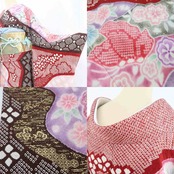 生地の一部を糸でくくる、縫い締める、板で挟むなどしてから染め、色の滲み具合や立体的で独特の風合いを生む“絞り”は、見る角度や袖を通す貴女の体の曲線よって様々に表情を変えます。他の技法では味わえないその奥深さは、圧倒的な迫力が感じられます。