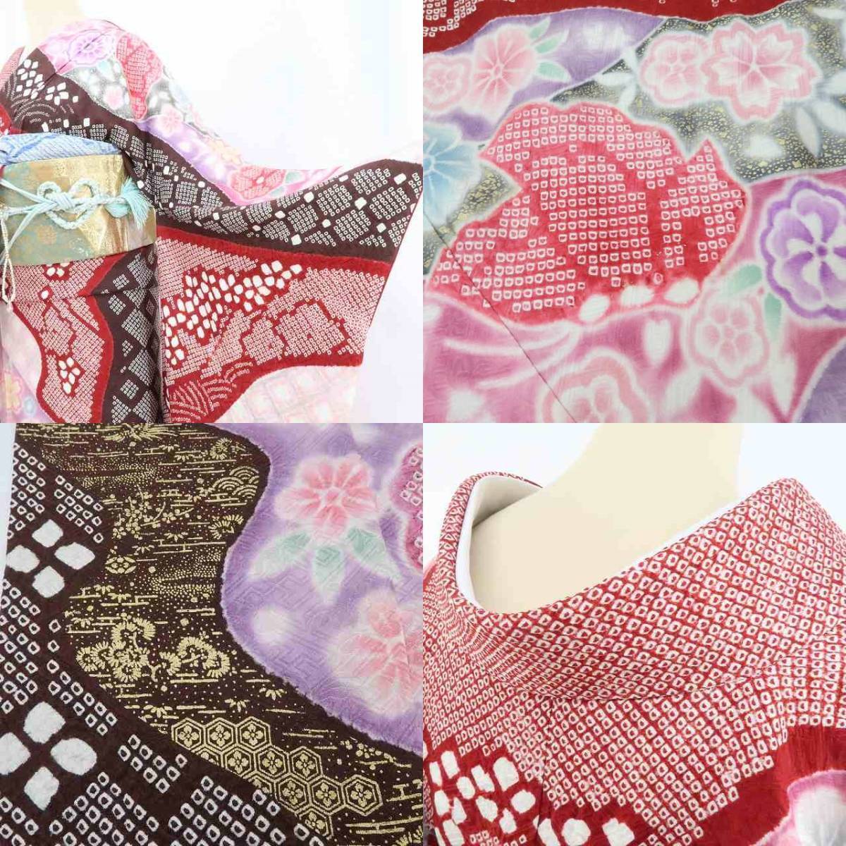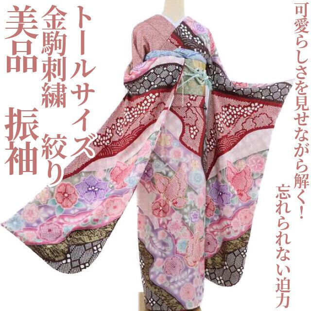 美品 金駒刺繍 絞り 着物 正絹 成人式 トールサイズ“可愛らしさを見せながら解く!忘れられない迫力”振袖 2995