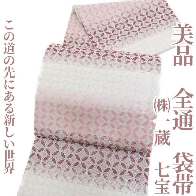 美品 ㈱一蔵 七宝 着物“この道の先にある新しい世界”正絹 全通 袋帯 3015