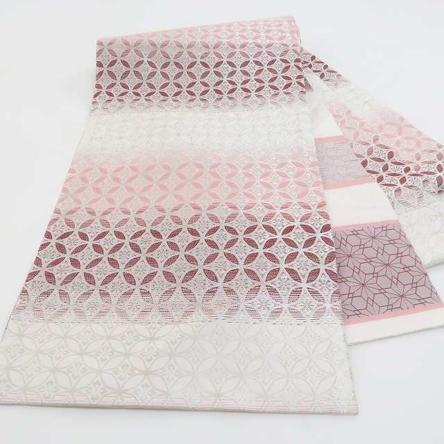 馴染みの古典柄を新たな視点でデザイン化したひと品、現代的な趣で女性らしさを表現する帯模様、飽きの来ない色柄に思わず締めたくなるあなたのお気に入りとなることでしょう。