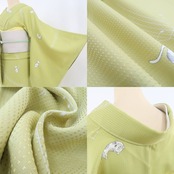 柔らかな若苗色の優彩に広がる丸みの表情、シンプルな構図で描き込まれたデザイン音符の流線模様、そして愛らしい猫のアクセントが添える“今をときめくモダンな色艶”、さぁ“いつもと違う自分へシフトチェンジ”…美しくも飾り過ぎないデザインセンスが魅力の仕上がりになっています。