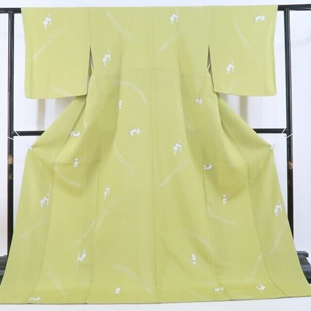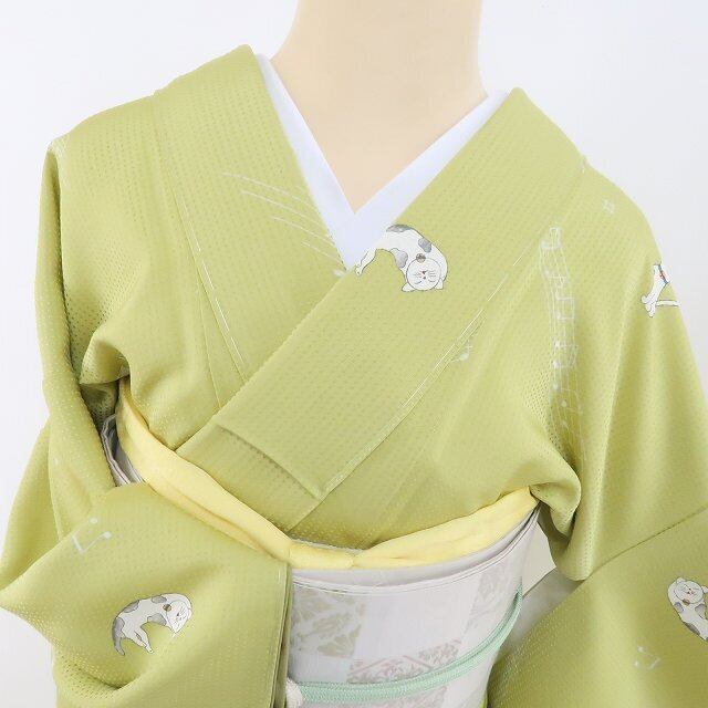 新品 猫 音符 着物“いつもと違う自分…モダン和装に笑顔の演出”正絹 仕付け糸付 小紋 3039