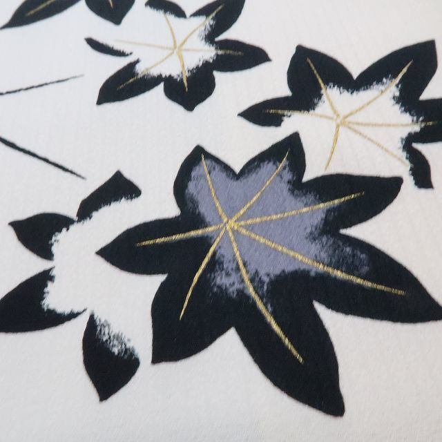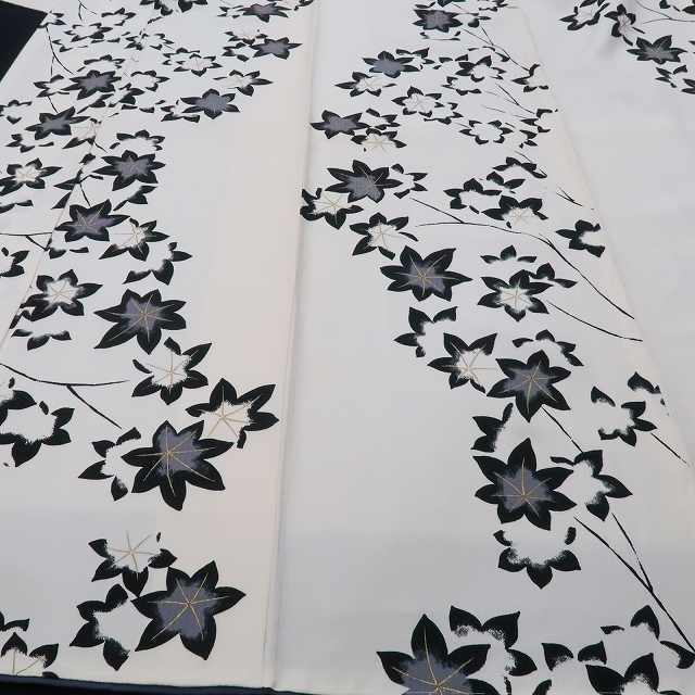 “探し求めて巡り合う奇跡”、楓をモチーフに無彩色系の色味でデザイン化したひと品…トールサイズの素敵な小紋でございます。