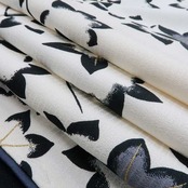 優しい象牙色の地に柔らかな揺らぎを魅せるデザイン楓の流線模様、それは巧みな構図にモノトーン系の彩色が創り出す飾り気のない和の美しさ、ありそうでないその意匠性はやはり創作小紋ならでは…醸し出される趣に溢れんばかりの和の潤いがとても印象的に表現されています。