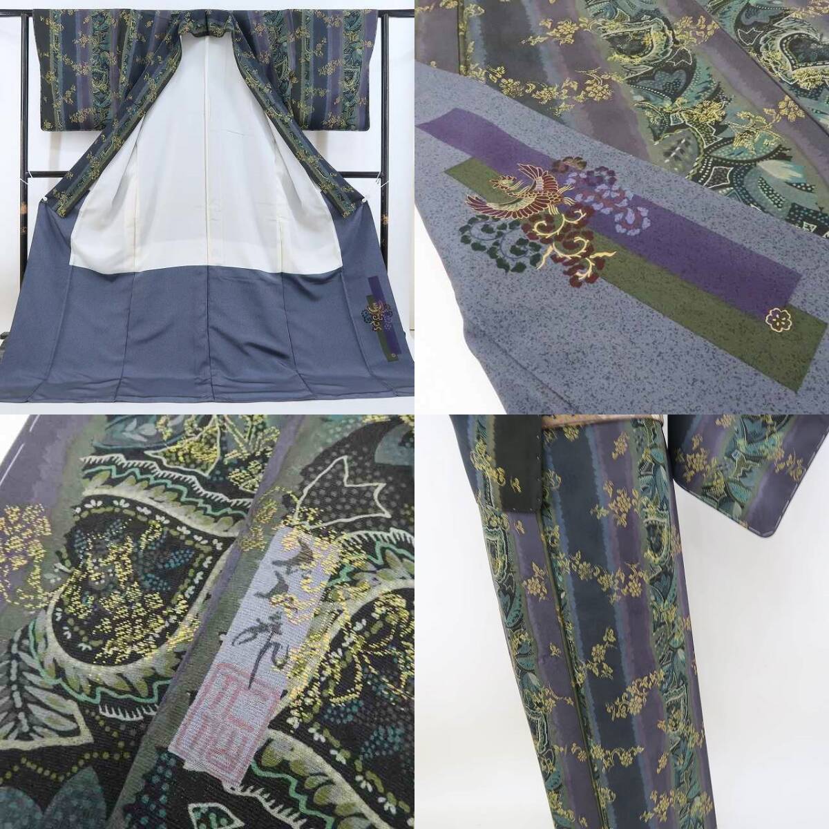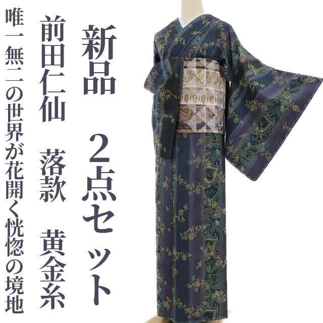 新品 2点セット 前田仁仙 落款 黄金糸 着物 仕付け糸付“唯一無二の世界が花開く恍惚の境地”小紋・袋帯 3065