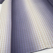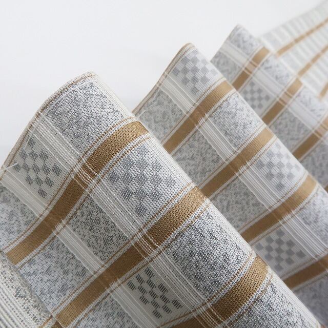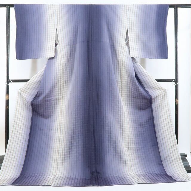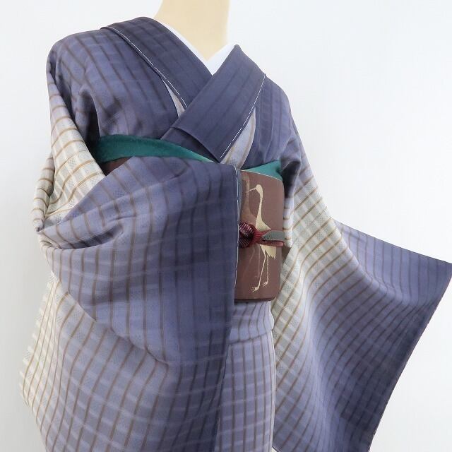 藍鉄色と白練色の色味で染め出された艶めいた暈しのグラデーション、縦横に走るデザイン格子に醸し出される“今をときめくモダンな色艶”、さぁ“いつもと違う自分へシフトチェンジ”…美しくも飾り過ぎないデザインセンスが魅力の仕上がりになっています。