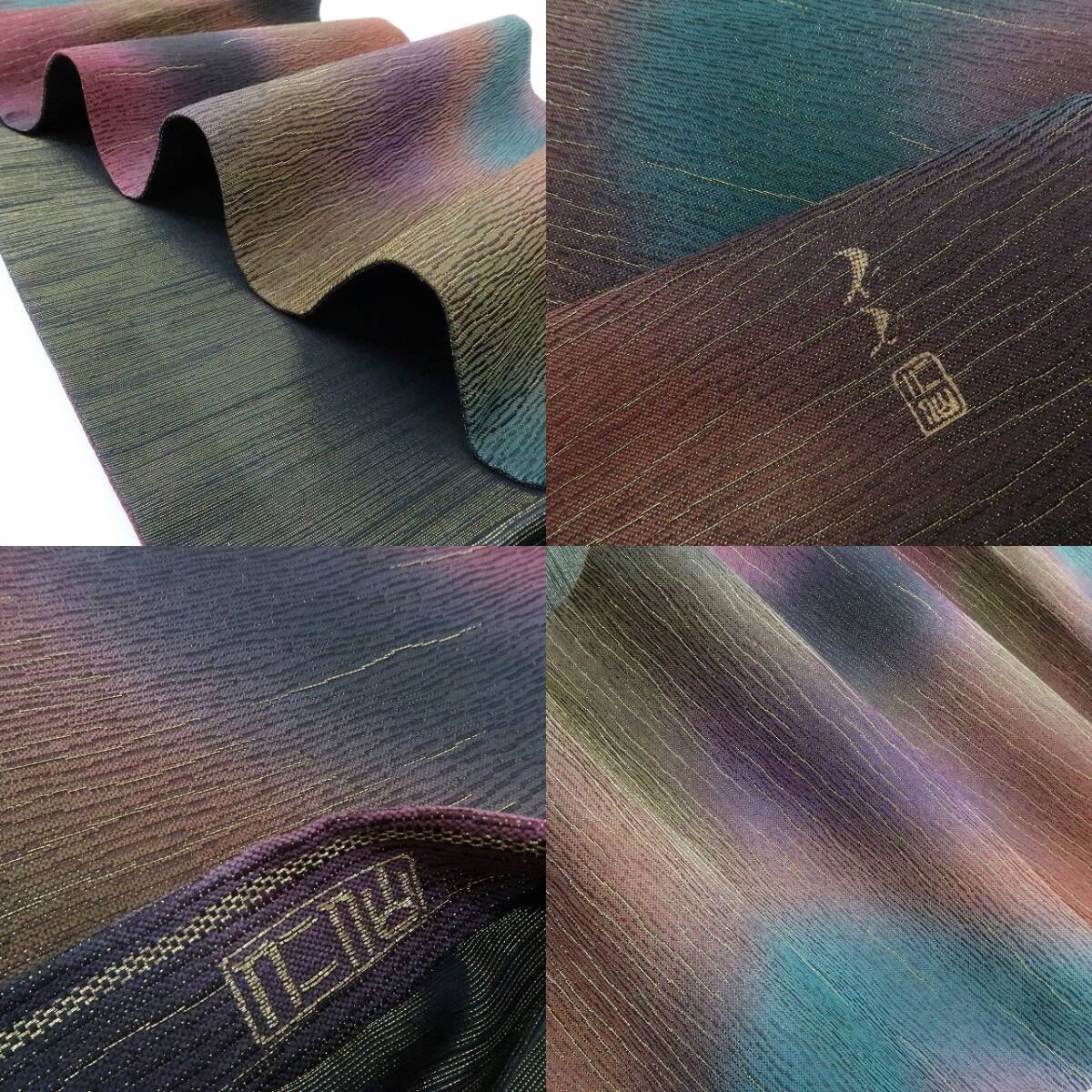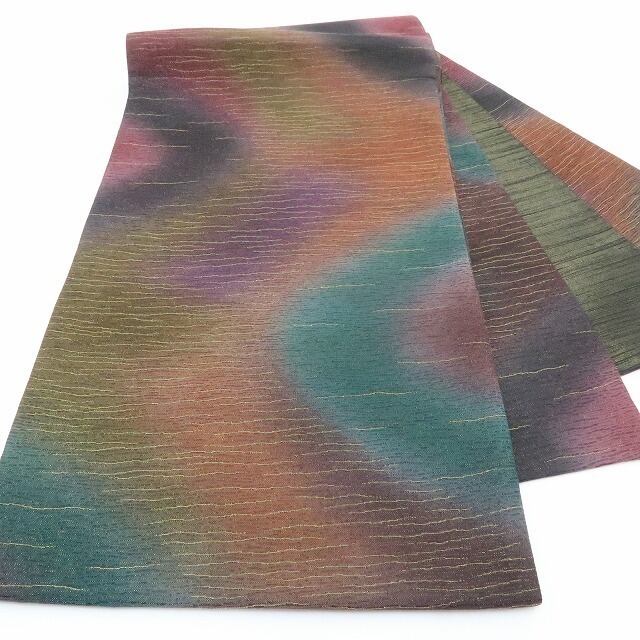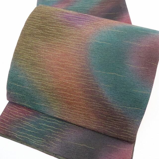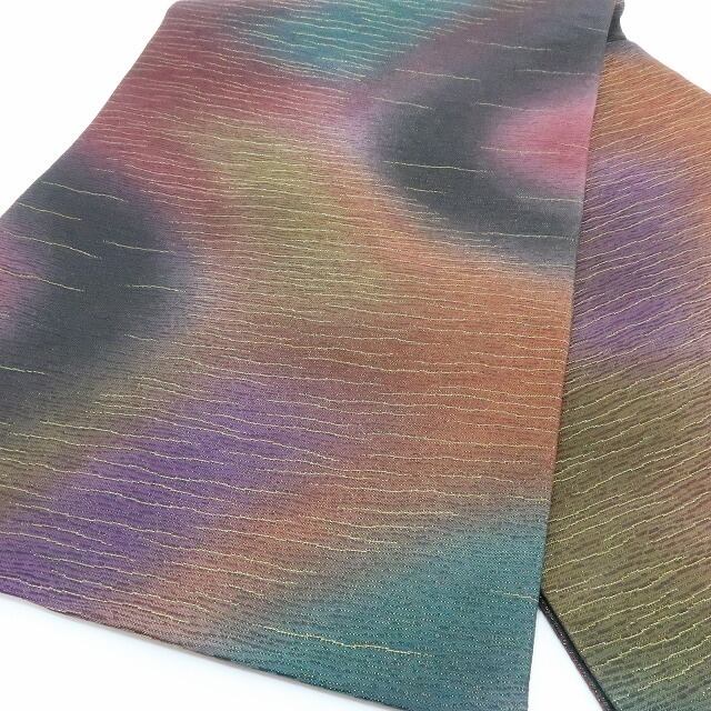 美品 前田仁仙 落款 暈し 金通し“ひと度締めれば世界が変わる!色の余韻に夢を見る”着物 正絹 袋帯 3126