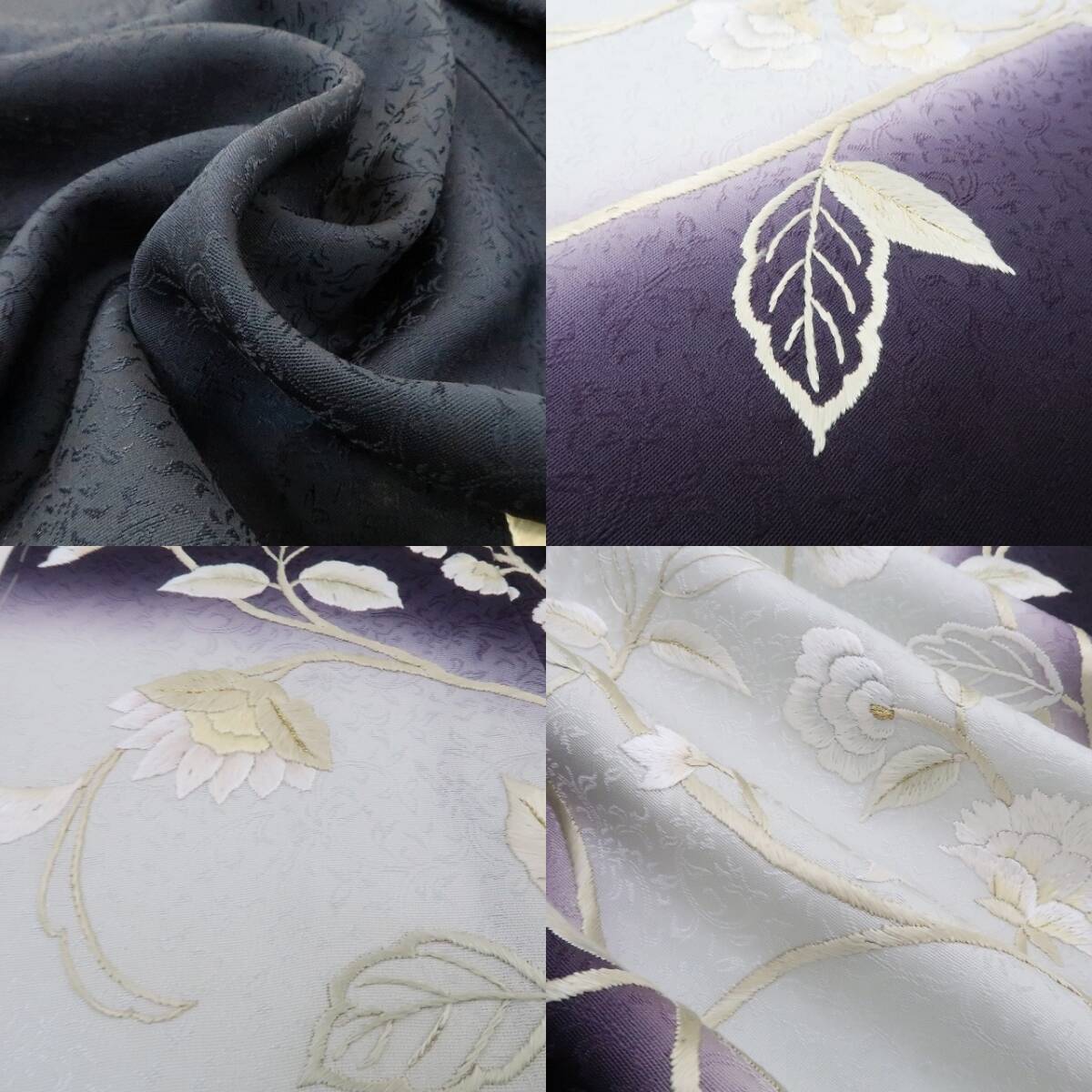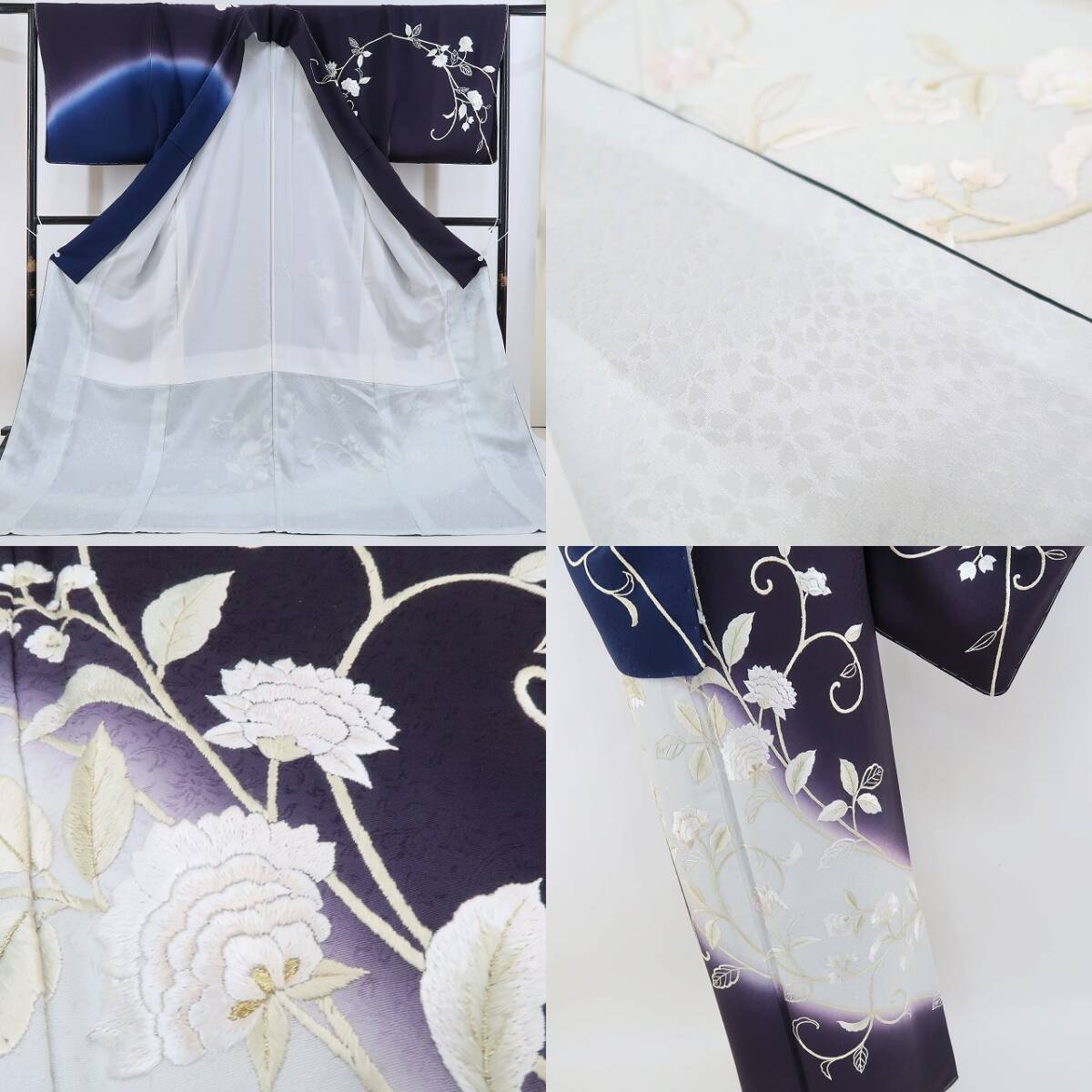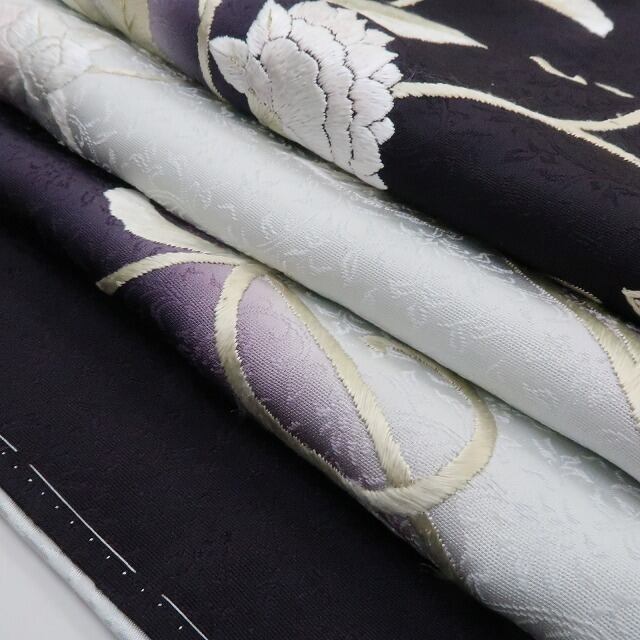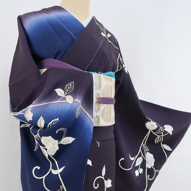 新品 総刺繍 着物 正絹 仕付け糸付 トールサイズ“薫り立つ葡萄色×瑠璃紺色に寄り添う淡い光と華麗な唐花”訪問着 3137