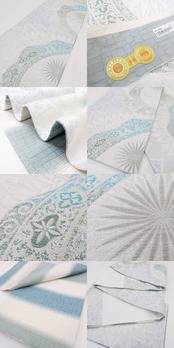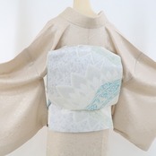 溢れ出る気品に洗練の風を吹かせるシルバーで大きな太陽の如く大胆に顔を出す華文、その姿から放たれる繊細な輝きやどこかエキゾチックな薫り、どこから見ても隙のない精巧な西陣織ならではの美しさは、スタイリッシュな結びを演出。