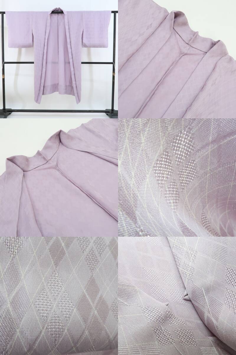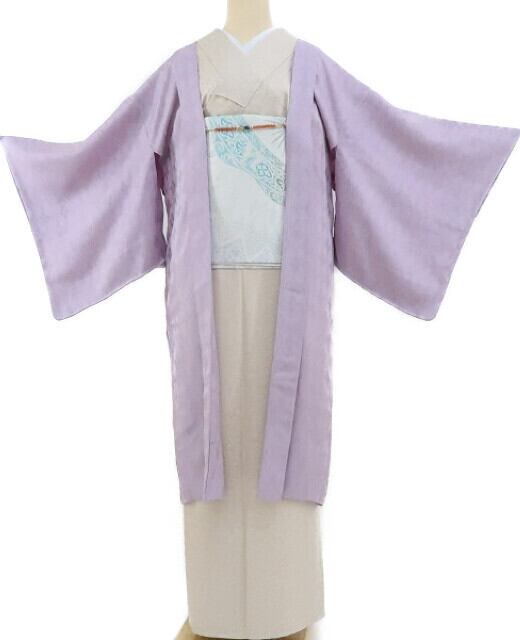 新品 紋紗 着物 正絹 仕付け糸付 ロング丈“丁度良い心地よさを奏でる竜胆色の花菱”長羽織 3186