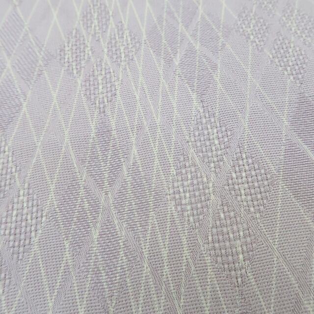 二本の経糸で緯糸一本ずつをからめて織り上げたシンプルなもじり織で、同じ夏の生地の絽よりも全体的に目が開いているので透け感が強く、非常に通気性が高い“紗”。こちらのように織り柄のある紋紗、紬糸を使った紬紗などがあります。