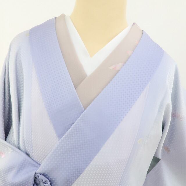 道中着は、フォーマルな道行きに対して、比較的カジュアルな装いに羽織る和装アウターです。衿の形は道行と違い着物の衿に沿う形状で、一般的にお洒落着として、好みの生地や柄行で仕立てられます。