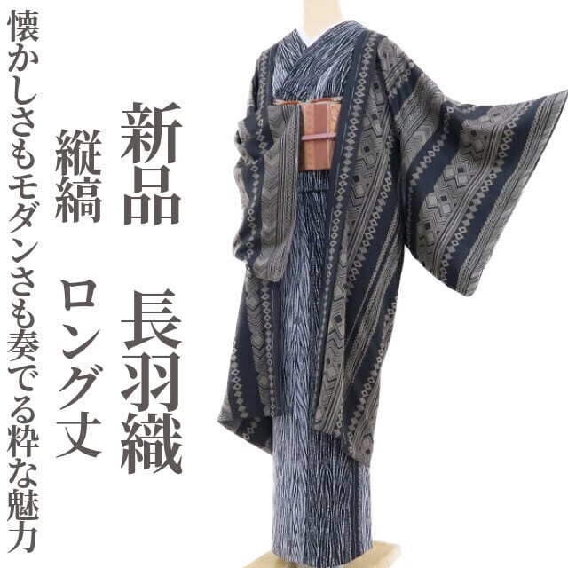 新品 縦縞 着物 正絹 仕付け糸付 ロング丈“懐かしさもモダンさも奏でる粋な魅力”長羽織 3285