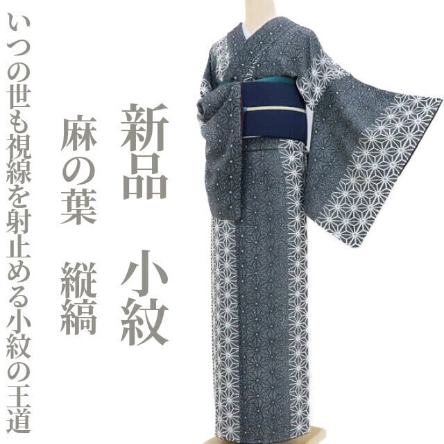 新品 麻の葉 縦縞 着物“いつの世も視線を射止める小紋の王道”正絹 仕付け糸付 小紋 3329