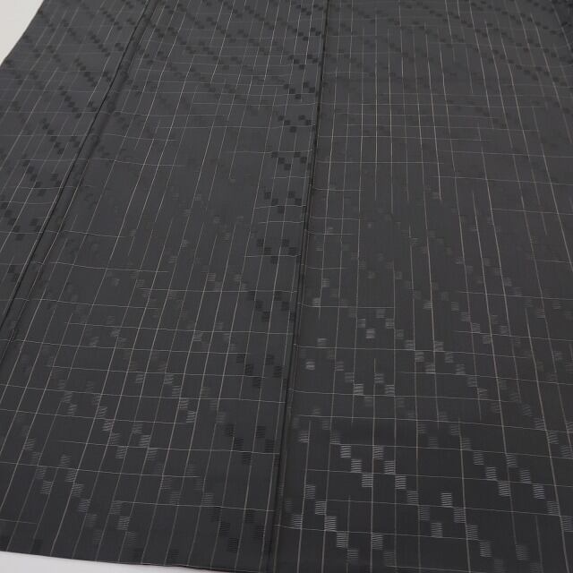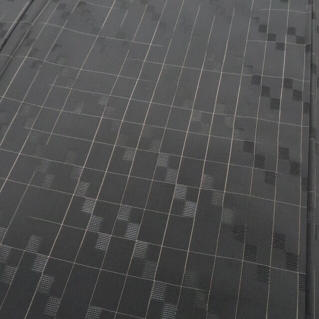 落ち着いた濃いグレーの色地に描き込まれたお洒落格子の濃淡デザイン、巧みな意匠が醸し出すえも言われぬお洒落感、それはシンプルなテーマに潜むハイセンスな意匠美、和の日常をテーマにしモダンな趣で仕上げたひと品、お洒落を先取る貴女にお勧めです。