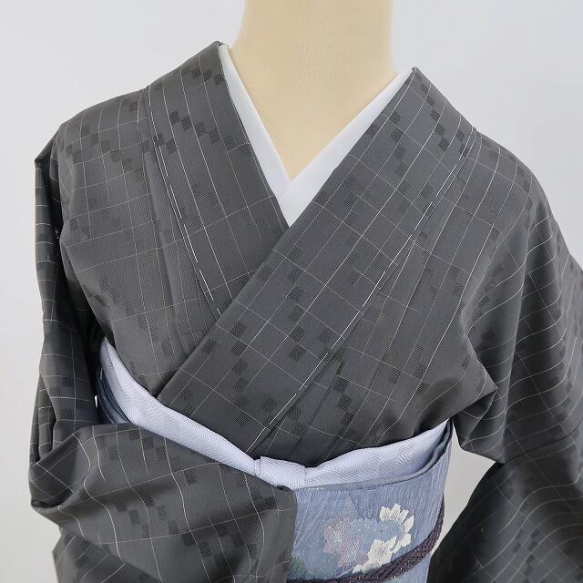 全体的には小粋なセンスを感じさせてくれるモダンエレガントなひと品、様々な帯や小物合わせで自分流のコーディネートを存分にお楽しみください。